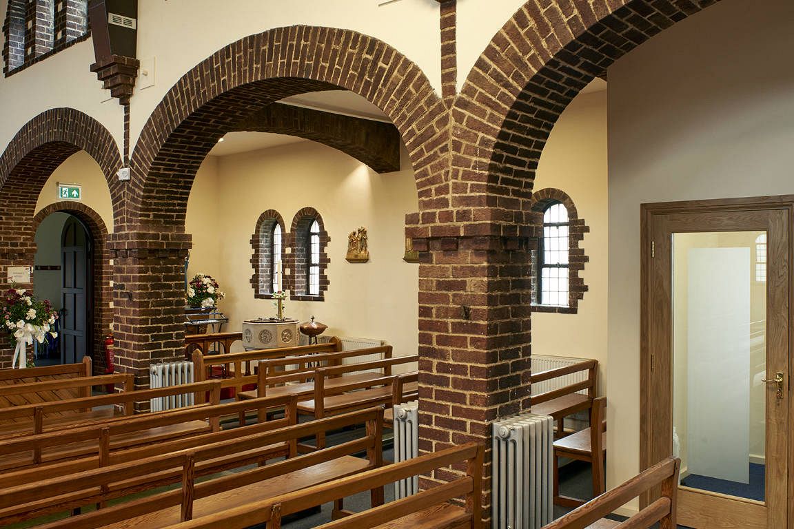 Works at Christ the King Catholic Church involved a complete re-wire of the building, new fire alarm, lighting, external repairs, damp proofing works, internal plaster repairs and complete redecoration together with the introduction of a new confessional facility.